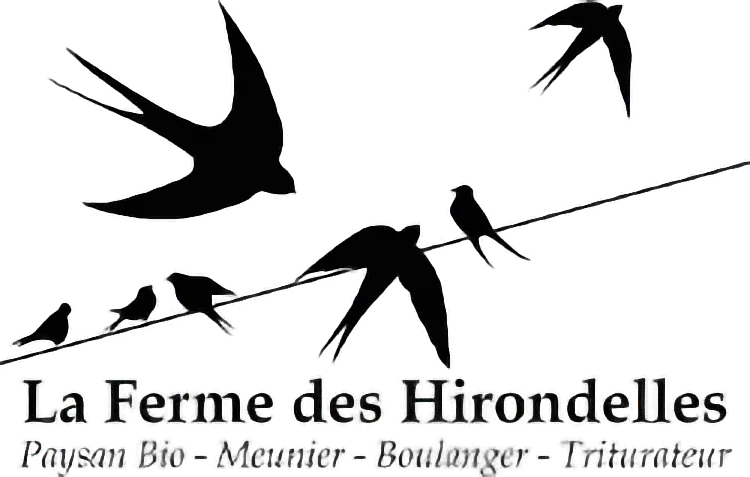 La ferme des Hirondelles est une exploitation familiale transmise depuis plus de cinq générations. Sa conversion à l’agriculture biologique en 2018 a rapidement fait germer l’idée de la transformation de l’ensemble de sa production sur place. Ainsi, les cultures ne parcourent pas plus d’1,5km à vol d’oiseau des champs au site de transformation. La meunerie transforme les céréales (blé, seigle, maïs, épeautre, sarrasin) en farine brute sans aucun additif grâce à ses deux moulins à meule de pierre Astrié. Un fournil est venu compléter la meunerie en 2020. Les boulangers y travaillent au levain naturel, la pâte est fermentée en pousse longue avant d’être cuite au four à bois, ainsi les pains sont plus digestes et se conservent jusqu’à 5 jours. Toujours sur le même site, l’huilerie transforme les graines oléagineuses (tournesol, colza, cameline) par première pression à froid.